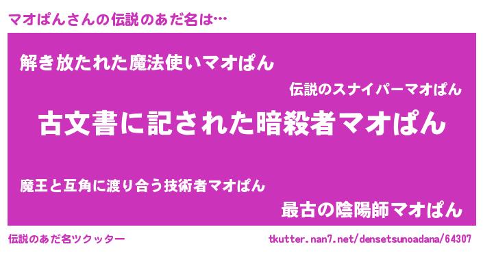| 意味不明あだ名 | 『自称マオぱん』『永久保存マオぱん』 |