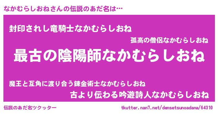 | 意味不明あだ名 | 『なかむらしおねフォーエバー』 |