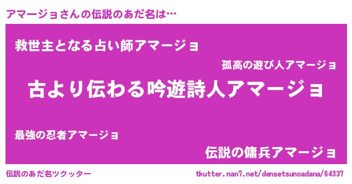 | 意味不明あだ名 | 『永久保存アマージョ』『自称アマージョ』 |