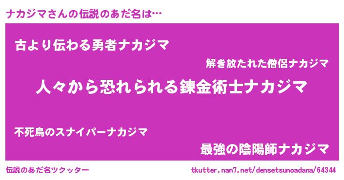 | ヒーロー風カッコイイあだ名 | 『仮面ナカダー』『超時空戦士ナカジマ』 |