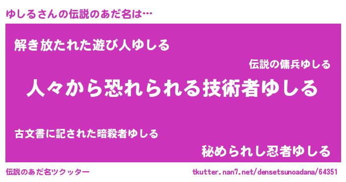 | 意味不明あだ名 | 『住所不定無職ゆしる(13歳)』 |