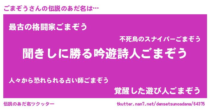 | 男性向けラノベタイトル風あだ名 | 『ごまぞうという概念が存在しない退屈な世界 』 |