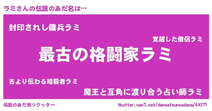 | ヒーロー風カッコイイあだ名 | 『ウルトララミマン』『スーパーラミ』 |