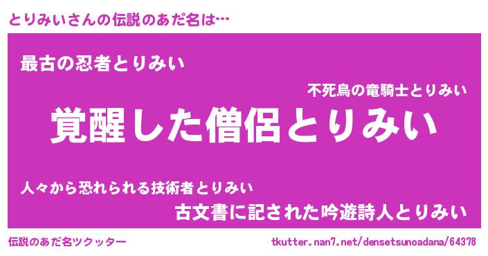 | 男性向けラノベタイトル風あだ名 | 『とりみいの嫁は女の子じゃないと思った?』 |