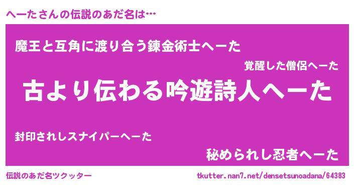 | ヒーロー風カッコイイあだ名 | 『ネオヘータ』『友情の使者へーた』 |