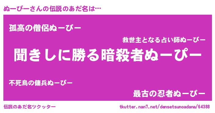 | 胡散臭い通販商品みたいなあだ名 | 『絶対に幸福をもたらす健康食品…その名も「ぬーぴー」』 |