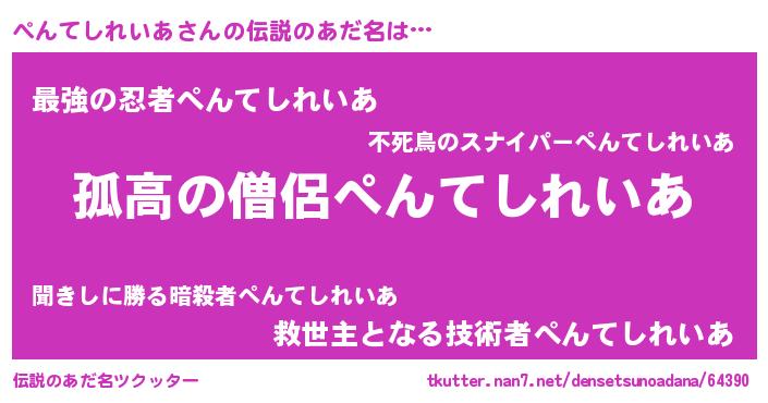 | 女子向けラノベタイトル風あだ名 | 『ぺんてしれいあは平凡を望む』 |