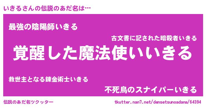 | ヒーロー風カッコイイあだ名 | 『天弓騎士イキ』『ウルトラいきるマン』 |