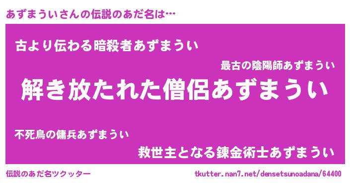 | ヒーロー風カッコイイあだ名 | 『最強戦士アズマウイ』『銀牙騎士アズ』 |