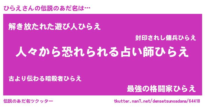 | ヒーロー風カッコイイあだ名 | 『正義の使者ひらえ』『魔戒騎士ヒラ』 |