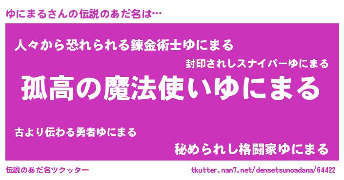 | 胡散臭い通販商品みたいなあだ名 | 『信頼と実績のサプリメント…その名も「ゆにまる」』 |