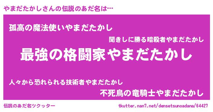 | ヒーロー風カッコイイあだ名 | 『仮面ヤマダー』『銀牙騎士ヤマ』 |