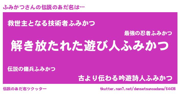 | 男性向けラノベタイトル風あだ名 | 『転生したらふみかつだった件』 |