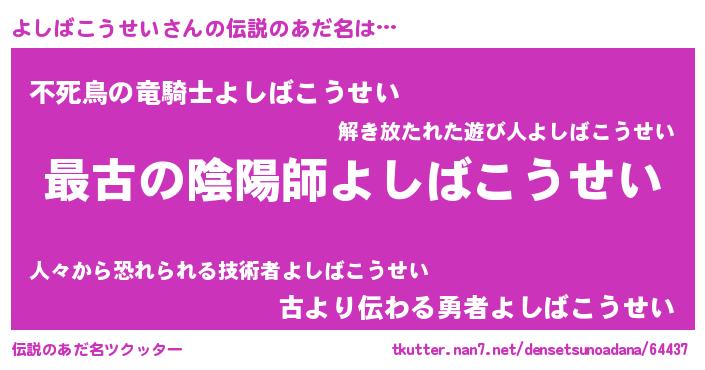 | ファンタジー風あだ名 | 『エターナルヨシバコウセイー』 |