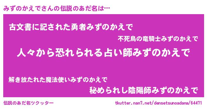 | ヒーロー風カッコイイあだ名 | 『正義の使者みずのかえで』 |