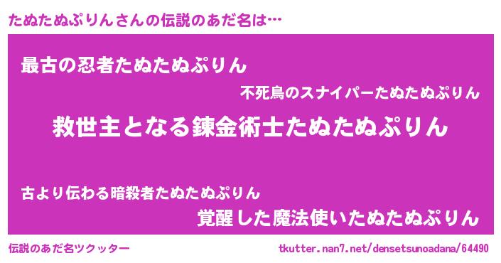 | 男性向けラノベタイトル風あだ名 | 『たぬたぬぷりんに滅ぼされるだけの簡単なお仕事です』 |