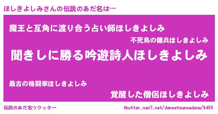 | 男性向けラノベタイトル風あだ名 | 『ほしきよしみという概念が存在しない退屈な世界 』 |