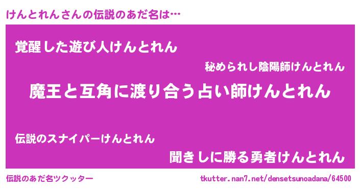 | ヒーロー風カッコイイあだ名 | 『仮面ケンダー』『愛の使者けんとれん』 |