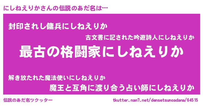 | 意味不明あだ名 | 『自称にしねえりか』 |