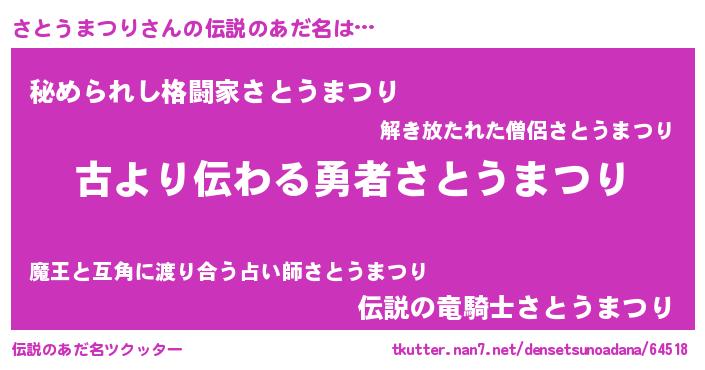 | 男性向けラノベタイトル風あだ名 | 『転生したらさとうまつりだった件』 |