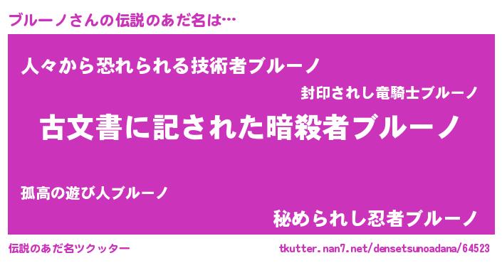 | 意味不明あだ名 | 『永久保存ブルーノ』『自称ブルーノ』 |