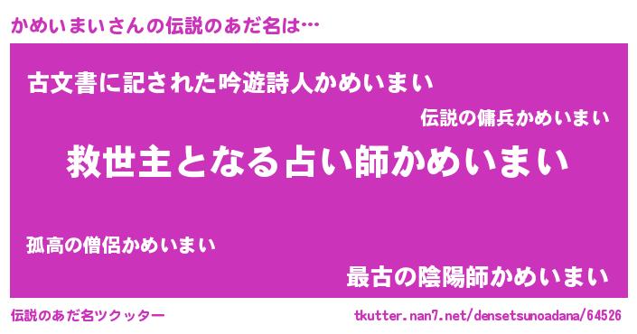 | 意味不明あだ名 | 『自称かめいまい』『永久保存かめいまい』 |