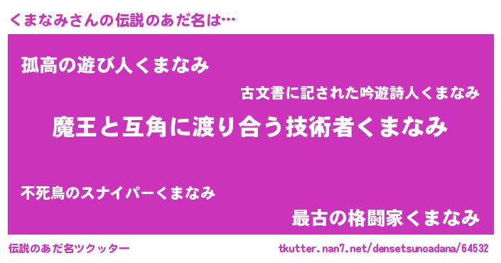 | ヒーロー風カッコイイあだ名 | 『愛の使者くまなみ』『仮面クマダー』 |
