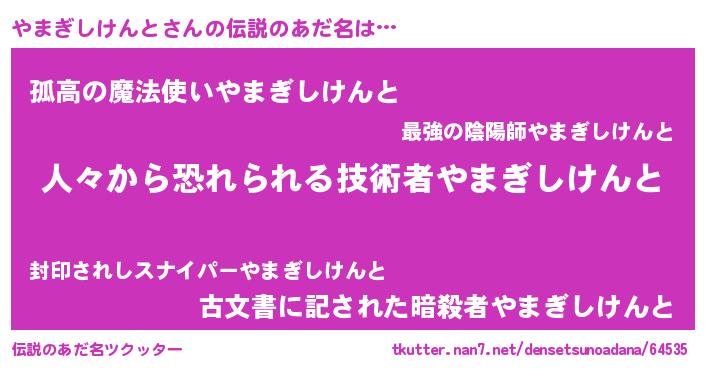 | ヒーロー風カッコイイあだ名 | 『正義の使者やまぎしけんと』 |