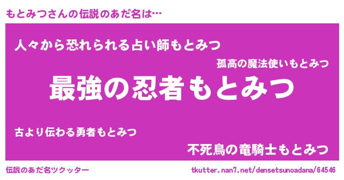 | 女子向けラノベタイトル風あだ名 | 『もとみつストレイドッグス』 |