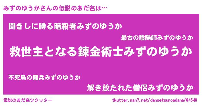 | ヒーロー風カッコイイあだ名 | 『慈愛の使者みずのゆうか』 |