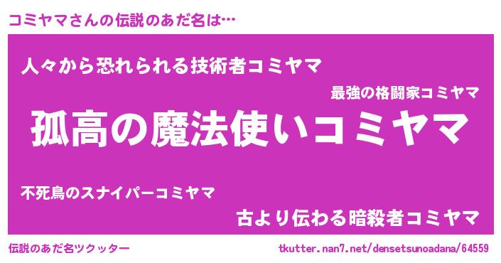 | 男性向けラノベタイトル風あだ名 | 『コミヤマスレイヤー』 |