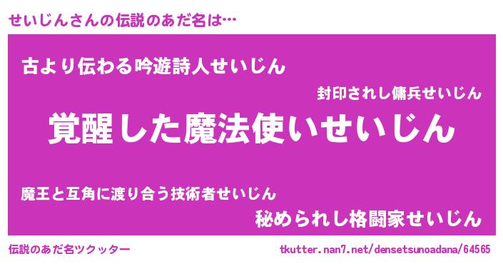 | 男性向けラノベタイトル風あだ名 | 『せいじん~年齢イコール彼女いない歴の魔法使い~』 |