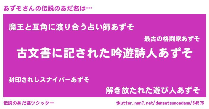 | 男性向けラノベタイトル風あだ名 | 『うちのあずそが世界を掌握している!』 |