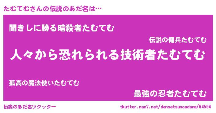 | 女子向けラノベタイトル風あだ名 | 『たむてむなんてお断りですっ。』 |