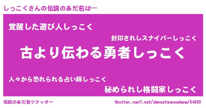| 意味不明あだ名 | 『永久保存しっこく』『自称しっこく』 |