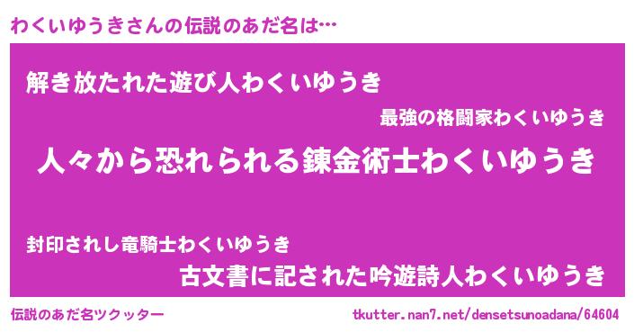 | ヒーロー風カッコイイあだ名 | 『友情の使者わくいゆうき』 |