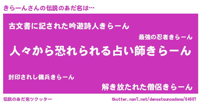 | ヒーロー風カッコイイあだ名 | 『友情の使者きらーん』『ネオキラーン』 |