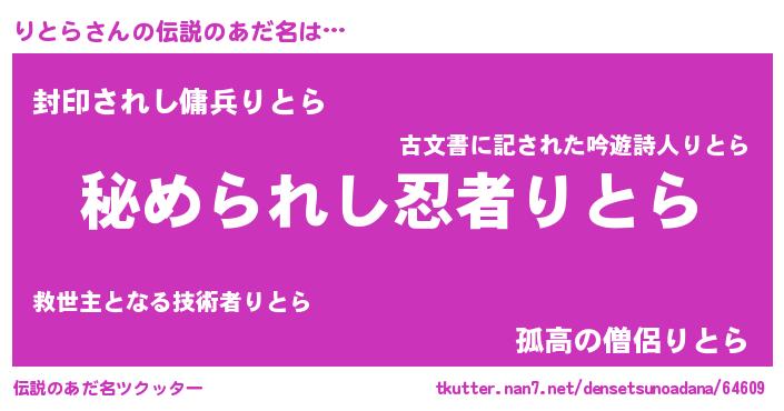 | 女子向けラノベタイトル風あだ名 | 『りとらの雑貨屋さん』 |