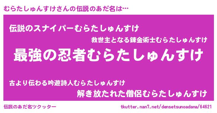 | 意味不明あだ名 | 『住所不定無職むらたしゅんすけ(14歳)』 |