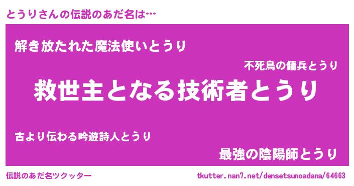 | 意味不明あだ名 | 『自称とうり』『住所不定無職とうり(7歳)』 |