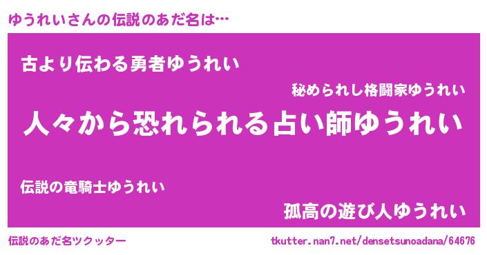 | ファンタジー風あだ名 | 『ユリユウヴァット』『ゼユウトゥ』 |