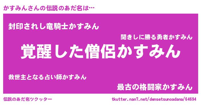 | 意味不明あだ名 | 『とにかく怪しいかすみん』 |