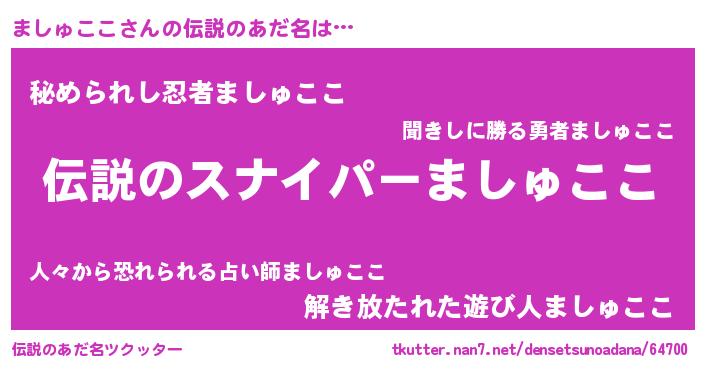 | ヒーロー風カッコイイあだ名 | 『スーパーマシュココ』『銀牙騎士マシ』 |