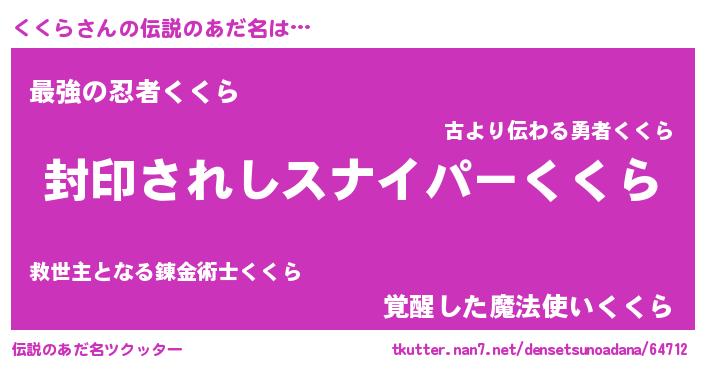 | ヒーロー風カッコイイあだ名 | 『スーパーククラ』『ウルトラくくらマン』 |