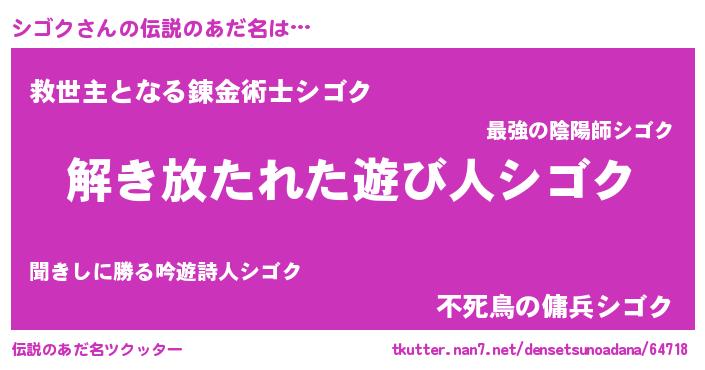 | ヒーロー風カッコイイあだ名 | 『幻影騎士シゴ』『正義の使者シゴク』 |