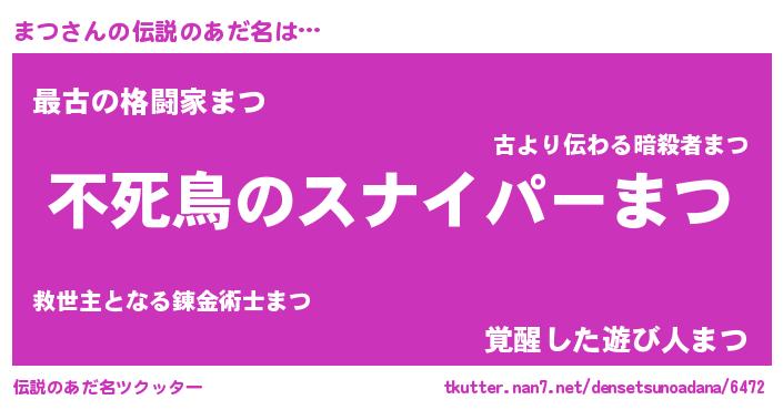 | 男性向けラノベタイトル風あだ名 | 『魔弾の王とまつ』 |