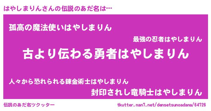 | 意味不明あだ名 | 『永久保存はやしまりん』 |