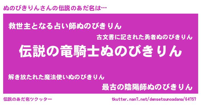| ヒーロー風カッコイイあだ名 | 『スーパーヌノビキリン』 |