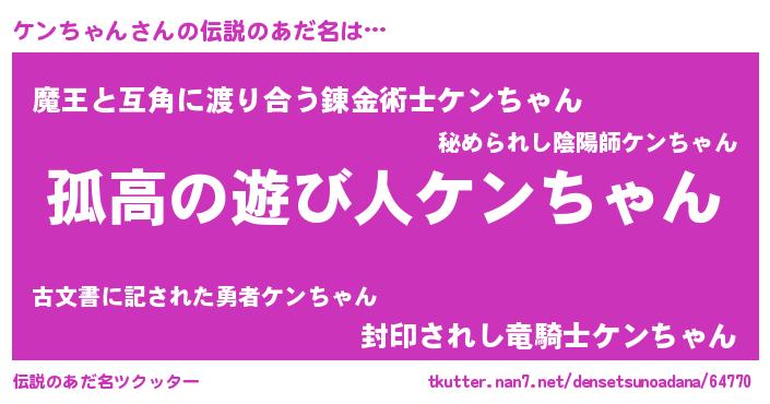 | ピコ太郎風あだ名 | 『ケン八郎』『ケケ太郎』『ケコ三郎』 |