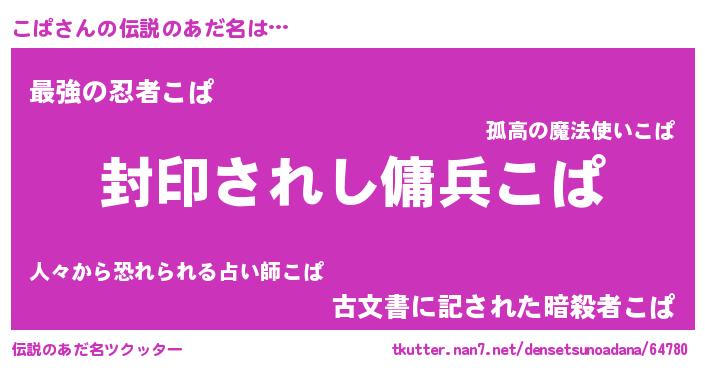 | 胡散臭い通販商品みたいなあだ名 | 『億万長者になれる水晶球…その名も「こぱ」』 |